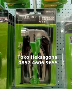 Tekiro GT-MC178TKR adalah palu multifungsi 5-in-1 yang dirancang untuk memenuhi berbagai kebutuhan pekerjaan pertukangan dan konstruksi. Palu ini memiliki lima fungsi utama: palu cakar, tang kombinasi, pemotong kawat, pembuka tutup botol, dan kunci pas. Dengan desain ergonomis dan bahan berkualitas tinggi, alat ini menawarkan kenyamanan dan daya tahan saat digunakan.